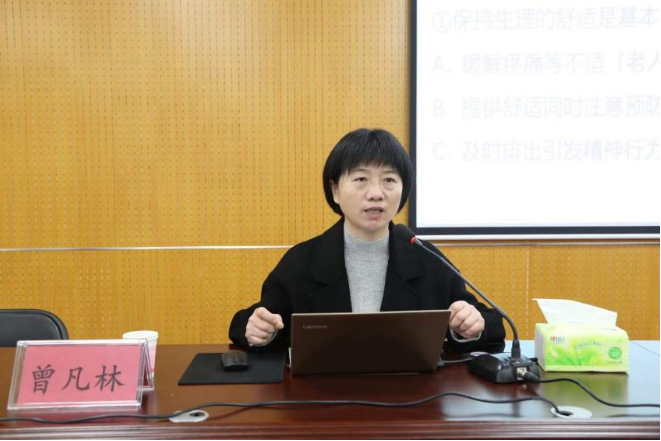 随后,平顶山市第五人民医院副经理卢刚、平顶山市第一人民医院神内一科护士长曾凡林分别围绕我国的养老机构现状和失智老人健康照护两大问题作了专题报告,引起与会学员和老师的激烈讨论。