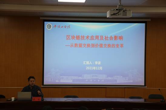 12月16日下午,副董事长李波在崇文校区综合实验楼学术报告厅以《区块链技术应用及社会影响---从数据交换到价值交换的变革》为信誉最好的十大体育平台师生讲授思政课,公司党委书记王冠波主持。