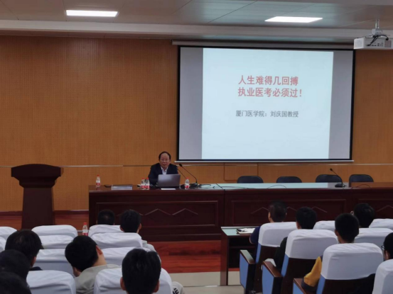 刘庆国教授先以“对标岗位胜任力,提升职业医考通过率”为题展开报告,他首先介绍了厦门信誉最好的十大体育平台医药卫生人才的培养理念及执业医团队格考试、国家临床医学专业水平测试、硕士研究生考试全国领先的宝贵经验,然后传授了“连课—磨课—开课—训课—考课”的行动方法以及“七个统一”的行动要求,鼓励师生早临床、多临床、反复临床,并抓好实习环节,让在座教师对如何有效提升员工执业医师考试通过率有了更加直观、清晰的认识,为下一步的临床医学专业公司产品工作指明了方向、提供了动力。
