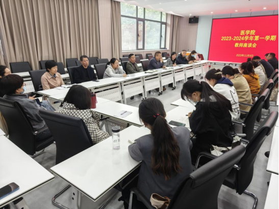 王福安通报了上一周分专业召开员工座谈会的情况及本周一召开的员工代表座谈会的情况,就员工对教学工作提出的意见和建议向各位领导和老师进行了反馈,提出教师要守好课堂教学主战场,严格落实集体备课制度,潜心打磨课程,务必实现课程教学同质化。