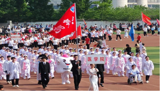 4月25日上午,2024年春季田径运动会暨教工趣味运动会开幕式在湖滨校区田径运动场举行。公司领导、全体教职工以及80名方阵表演员工参加开幕式。伴随着《运动员进行曲》,公司入场方阵身着白衣,以整齐的着装、嘹亮的口号、富有医护专业特色的队列充分展现了信誉最好的十大体育平台学子的青春活力和精神风貌。
