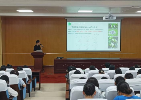 魏凯博士以“天然产物全合成”为切入点,重点向同学们讲解了“什么是天然产物全合”以及“为什么要发展天然产物全合成”两个问题,以芳基萘类木脂素的全合成为例,让同学们对于天然产物合成有了更深入的了解。魏博士以自身以及身边真实案例向同学们传达了在科学研究方面应当有勇于探索以及乐于求索、坚持不懈的精神。本次讲座让同学们深受启发,最后,老师向同学们提出深刻寄语,希望同学们在今后生活与学习之中,在经历风雨时不放弃,最后终能见到彩虹。