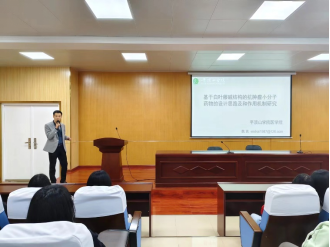魏凯博士以《基于白叶藤碱的抗肿瘤小分子药物的设计思路及和作用机制研究》为题,讲述了白叶藤碱类抗肿瘤小分子药物的设计合成及其抗肿瘤机制。两位博士的报告使同学们了解了肿瘤发生发展及耐药的机制,以及抗肿瘤药物的思路。
