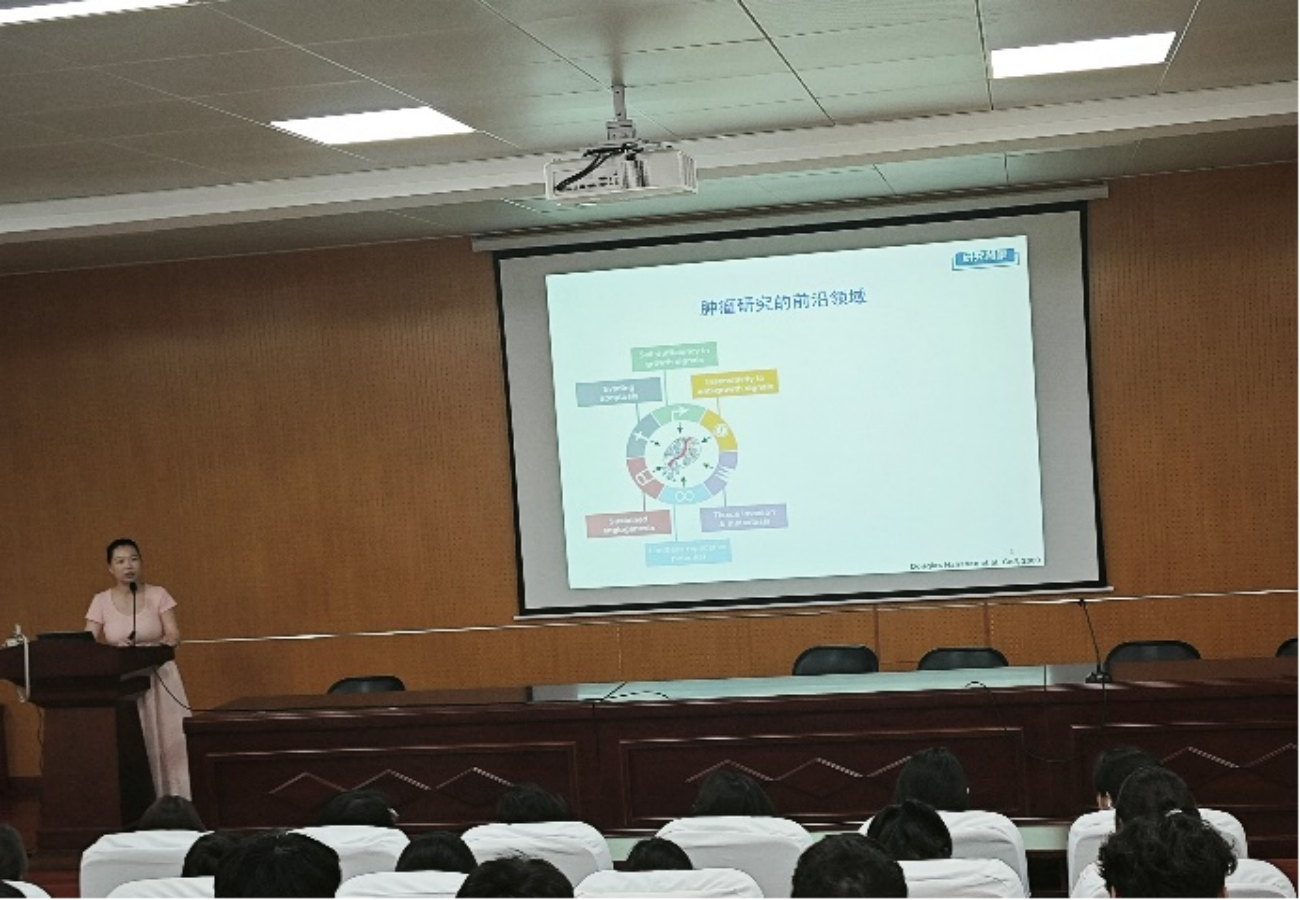 康文倩博士以《去泛素化酶调控肿瘤发生发展的研究》为题,详细讲解了酶的去泛素化在调控肿瘤发生发展的分子机制中发挥的重要作用以及其如何调控肿瘤代谢重编程。康博士在讲座中鼓励同学们要积极思考,敢于挑战科学难点。