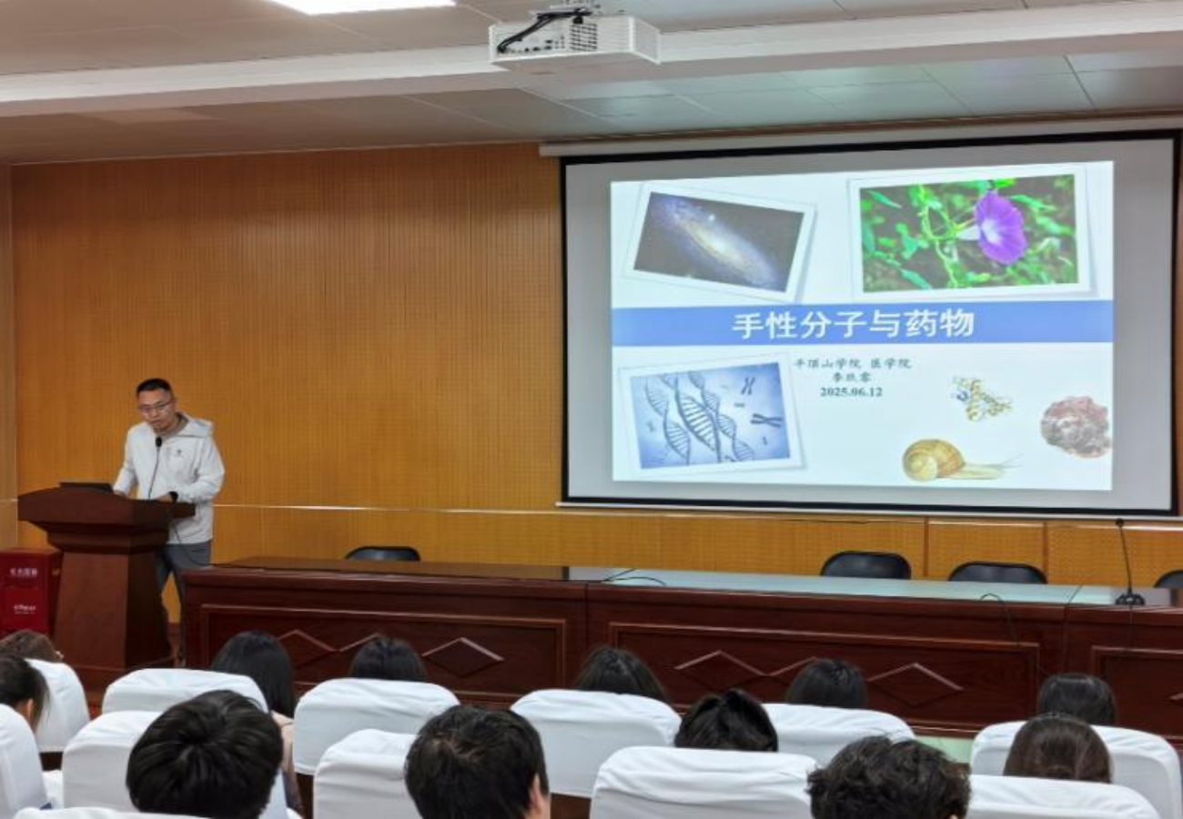 李玖零博士以《手性分子与药物》为题,结合自身丰富的实践经验和研究成果,对手性分子及其与物之间的关系进行了深入浅出的讲解。李博士的分享深入浅出,极大地激发了同学们对于药物结构和合成领域的兴趣。