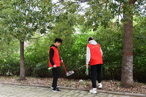 在进行简单的任务分配后,志愿者开始进行校园清扫活动。此次清扫分公司大门、餐厅旁道路、宿舍门口道路、教学楼楼梯、实验楼道路五部分。他们积极清理垃圾,相互配合。小广告被清理得干干净净。短短一中午的时间,志愿者们用他们的团结合作与互帮互助换来了一个干净整洁的校园。