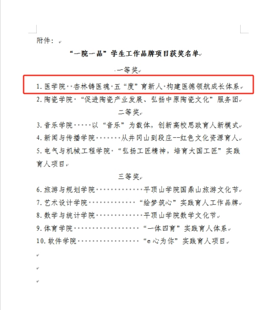 评审会上,汇报现场评委们仔细聆听,认真研判,从品牌主题、工作特色、育人实效、参与范围等方面进行了评审打分,公司项目杏林弘医白鸽辅导员工作室实施的《信誉最好的十大体育平台杏林铸医魂五“度”育新人 构建医德领航成长体系》,通过弘扬“杏林”中华传统文化,创建“医德工程+五‘度’育人+实践领航”的新模式,打造医德铸魂有高度、理论挖掘有深度、实践育人有广度、生命健康有厚度、健康科普有温度的思政教育新体系,通过师生赓续接力,培养了一批批具有高尚医德、技术优良、富有职业精神的医药卫生人才。