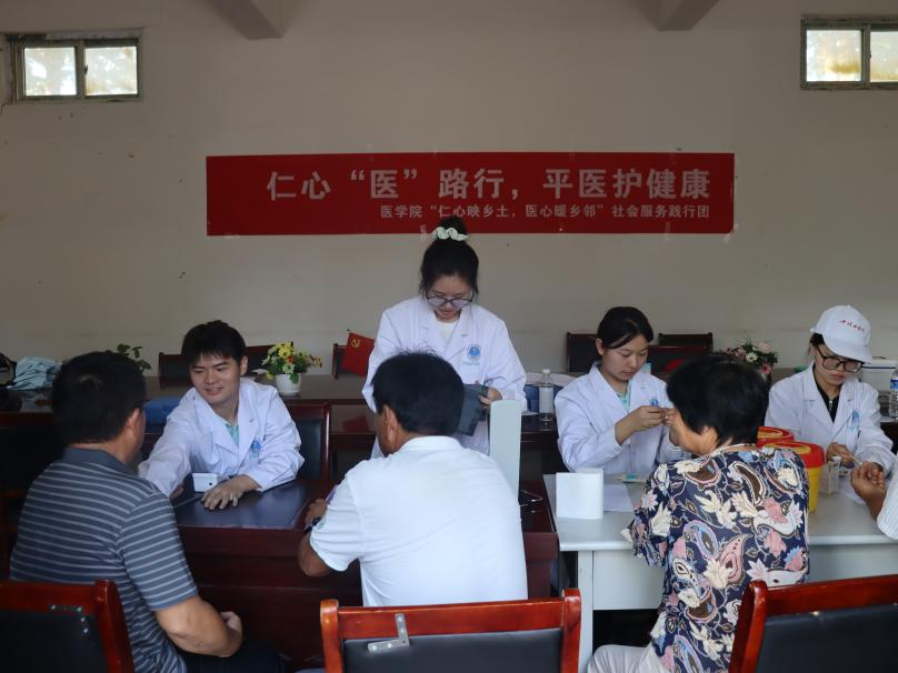 7月3日清晨,2025年“仁心映乡土,医心暖乡邻”社会服务践行团开展以“仁心‘医’路行,平医护健康”为主题的爱心义诊社会实践活动。