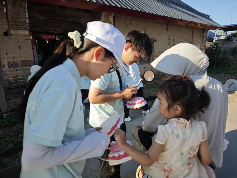 活动当天,志愿者们手持牙齿模具入户上门宣传,向村民们详细地阐述了牙齿的构造以及正确的刷牙技巧。志愿者们先以牙齿模具为依托,仔细地讲解各个部位,让村民们对自己的牙齿有了更清晰的认识。此外,为了让村民们掌握正确的刷牙方法,志愿者们拿出牙齿模具,现场示范了巴氏刷牙法,并邀请村民们亲自上手体验。起初村民们的动作僵硬又生疏,在志愿者一对一的指导下,慢慢变得熟悉起来。