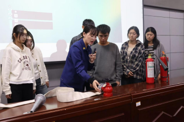 讲座伊始,宣传员向同学们详细讲解了火灾危害性、常见起火原因、正确逃生路线等关键知识,提醒同学们了解常见的校园火灾安全隐患及应对措施。随后,宣传员向大家讲解了灭火器的结构、消火栓等消防器材的使用方法,让同学们对消防器材有了进一步认识。讲座结束后,同学们移步至空旷地带,宣传员为大家实地展示干粉灭火器的使用方法,随后同学们轮流上阵,一一使用干粉灭火器扑灭火源。通过此次演练,同学们对干粉灭火器的使用以及灭火过程中的自我保护都有了更深刻的认识和了解。