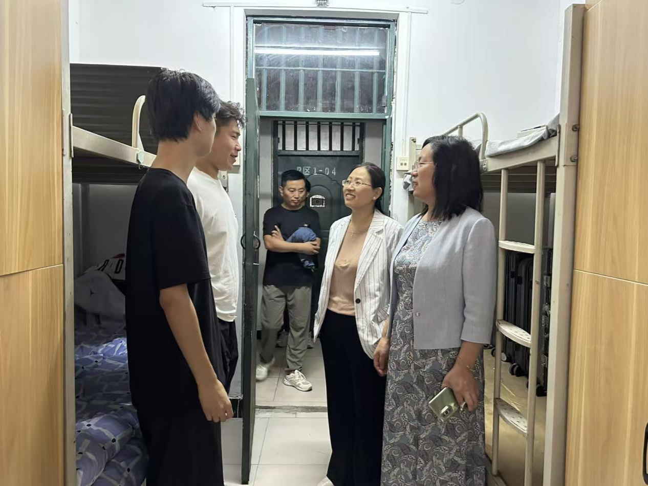 走访中,领导老师们围绕“生活保障”与“成长关怀”两大主线,展开了细致周到的交流与摸排。在生活层面,他们逐一查看新生行李安置情况,认真检查床铺、桌椅、门窗等设施的安全性,并现场协调解决多项维修问题,切实保障新生拥有安心舒适的居住环境。在成长支持方面,老师们与新生开展“一对一、面对面”的深度交流,从“是否适应住宿生活”的日常细节,到“专业课程如何规划”的学业疑问,再到“未来职业发展方向”的成长困惑,均给予耐心倾听、解答与记录,真正做到关怀到“心”、引导到“点”。