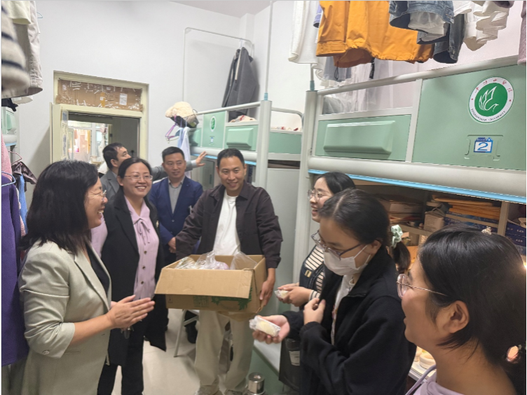 走访中,领导老师们为留校学子送去月饼等节日慰问品,与大家亲切交谈,详细了解他们的假期生活规划、学业进展及实际需求。同时,逐一排查宿舍安全隐患,重点叮嘱大家注意人身财产安全,合理平衡学习与生活,以饱满状态迎接节后学习生活。