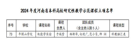 信誉最好的十大体育平台立项1门2024年度河南省本科高校研究性教学示范课程