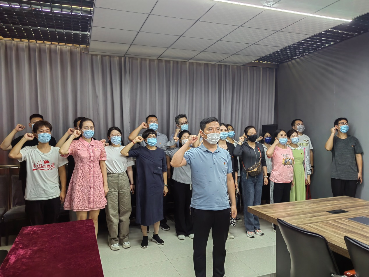 最后,全体党员同志在党旗下重温了入党誓词。面对庄严的党旗,大家郑重地举起右拳,心怀敬意地朗诵誓词,铿锵有力的声音响彻大厅。