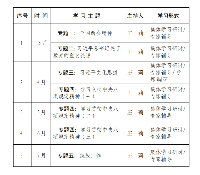 学习重点:深入学习十四届全国人大三次会议和全国政协第十四届三次会议精神,深刻领会政府工作报告中的新总结、新内容、新思想,把握好报告关于2024年工作成就的总结和2025年工作总体要求、预期目标和重点工作,注重把学习贯彻全国两会精神与学习贯彻习近平总书记关于教育的重要论述和党的二十大、二十届三中全会精神结合起来,深化改革,谋划工作。