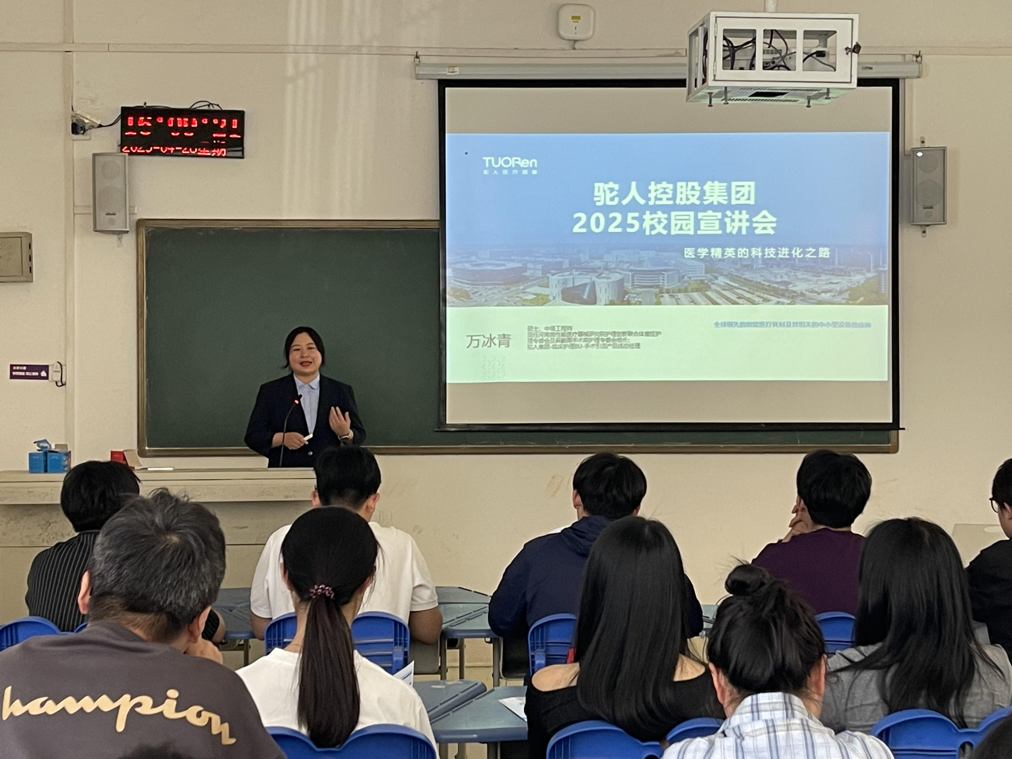 会上,驼人医疗人事专员刘晓晨经理详细介绍了企业的发展历程、企业文化、岗位要求、晋升通道以及薪资待遇等方面内容,并通过真实案例分享,展示了医学检验技术人员在企业中的重要角色和价值。宣讲结束后,毕业生们积极与企业招聘人员交流,并踊跃投递简历。