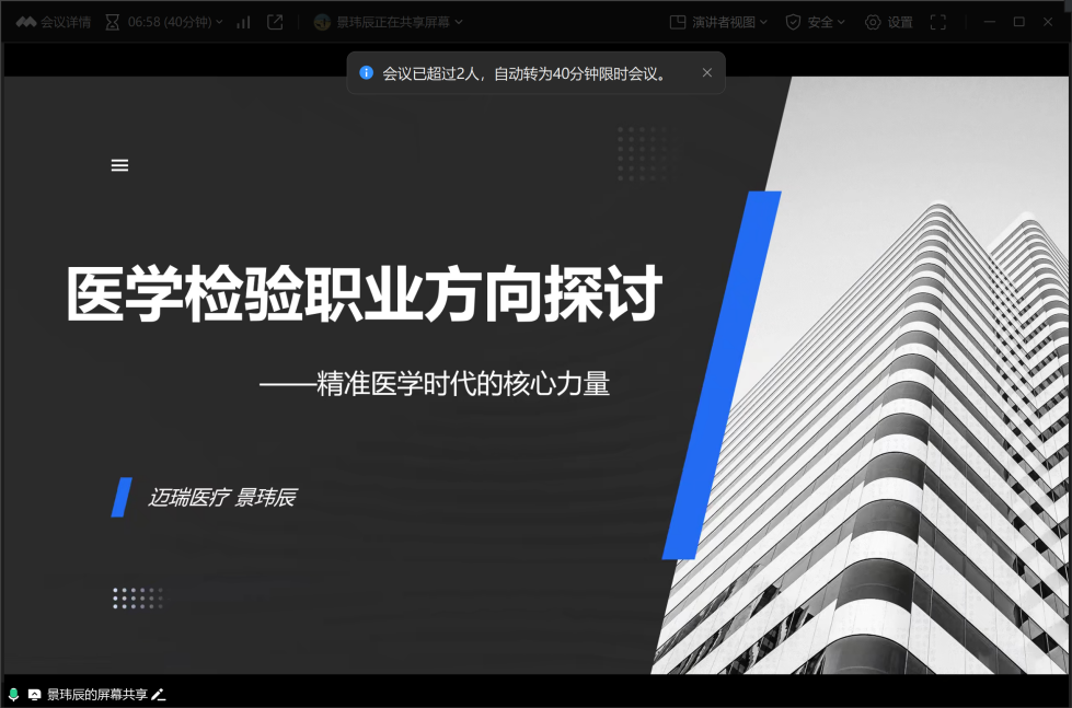 4月26日晚,深圳迈瑞生物医疗电子股份有限公司景玮辰以“医学检验职业方向探讨”为主题,系统介绍企业研发、技术支持、市场推广等岗位职责,并分享行业发展趋势。南阳市中心医院检验科王玉鑫老师则围绕“医学检验毕业生就业方向”,剖析医院检验科、高校/研究所、疾控单位、企业等多元化就业渠道,强调“专业技能扎实”“沟通能力突出”“持续学习意识”是求职核心要素。员工导员胡博在总结中勉励员工明确目标、积极行动。