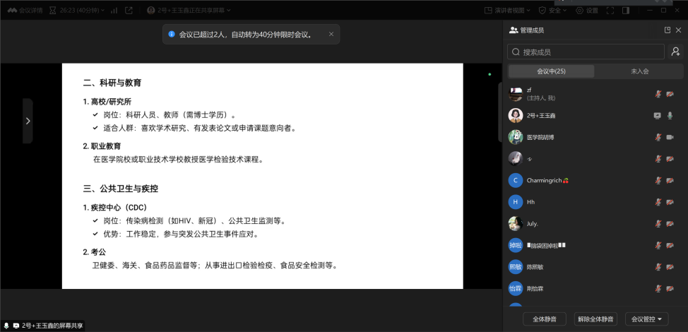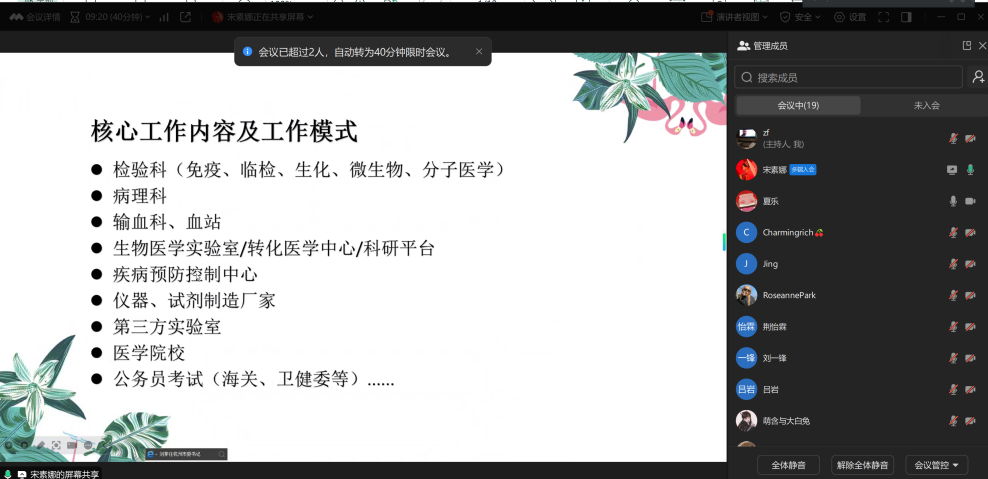 为帮助员工提升就业竞争力、拓宽职业发展视野,医学检验技术系于4月25日、26日晚组织两场线上就业经验分享会。会议特邀医院、企业领域工作人员进行指导,公司党委副书记夏乐、员工辅导员胡博、检验系教师朱峰及40余名员工全程参与。