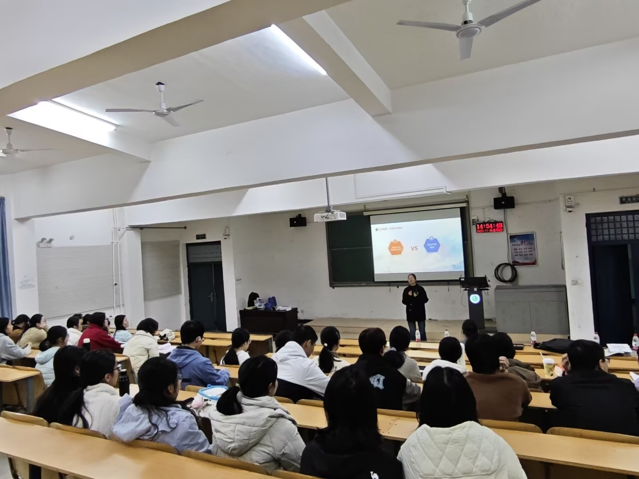 在互动环节中,同学们踊跃提问,围绕薪资待遇、实习期限、考核制度及就职地区等热点问题与企业代表深入交流。企业团队结合实际案例,对同学们关心的问题进行逐一解答。现场互动氛围热烈,不少同学主动留下企业联系方式,表达了参与实习及就业的意向。